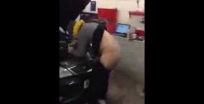Mechanik dostanie z zaskoczenia kieliszek sprężonego powietrza.