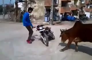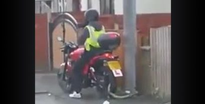 Młody człowiek robi akrobacje z jego motocykl, Kiedy nagle okolicy gang epiteithetai.
