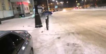 Kierowca Audi S5 w Rosji traci kontrolę nad samochodem, Podczas przenoszenia przy dużej prędkości na oblodzonej drodze.