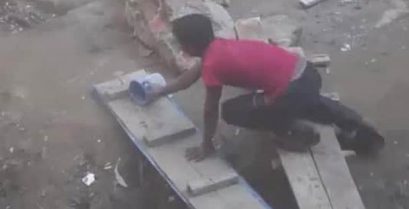 Młody człowiek w Bangladeszu, który nie widział przed wskaźnik laserowy w jego życiu, szalony, gdy niektóre dzieci bawiąc się nim z pobliskiego budynku.