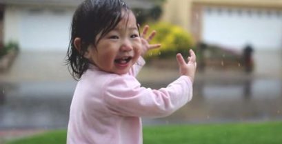 Kayden, A dziewczynka 15 miesięcy, występuje zjawisko deszczu po raz pierwszy w jej życiu i jej reakcja jest bezcenne.