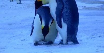 Wzruszający film, gdzie dwóch cesarskich pingwinów na Antarktydzie są żałoby po śmierci noworodka.