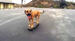 Bambus ten pies kocha jazdy na deskorolce, i tutaj zrobić przejażdżkę wraz z szefem.