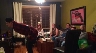 Kuglarz Vincent C sprawia, że śmieszne magia podstęp dla swoich przyjaciół.