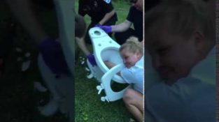 Strażacy pomagają kobiecie, która ma jej dłoni tkwi w muszli klozetowej