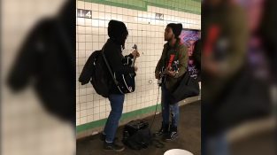 Dwóch członków zespołu Black Rabbit pięknie wykonuje piosenkę Beatlesów „Eight Days A Week” w metrze w Nowym Jorku.
