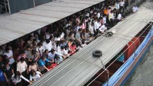 Bardzo powszechnym środkiem transportu publicznego w Bangkoku, taksówką wodną, nieskończoność wypełnia w godzinach szczytu.