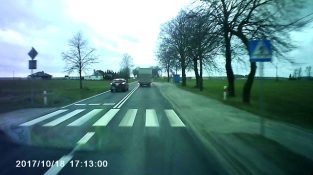 Kierowca w Polsce próbuje wyprzedzić drogi z podwójną linią ciągłą, w którym wyprzedzania jest zabronione. Niestety dla niego, samochód patrolowy bezpośrednio przed.