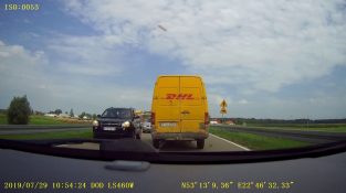 Pod koła jego samochodu na drogach w Polsce, dystrybutorem firmy DHL na krótko zatrzymał się, by nadać paczkę do kierowca napotyka na swojej drodze.