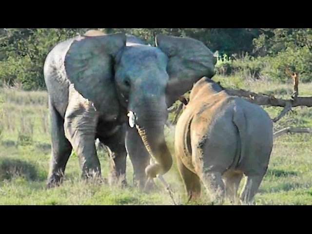 No Parque Nacional Kruger, na África do Sul, um elefante pega um pedaço de pau para o tronco e coloca-lo na cabeça na frente de um rinoceronte. Embora esse comportamento indica um desejo de impressionar o rinnokero, na verdade é um simples convite para jogar no lado do elefante. Infelizmente, O rinoceronte não tem brincadeira e atacar o elefante, cumprimento de madeira voando em direção ao rinoceronte para assustá-lo.