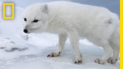 Na paisagem congelada do Ártico canadense, uma raposa do Ártico ficou muito curioso sobre um visitante humano.