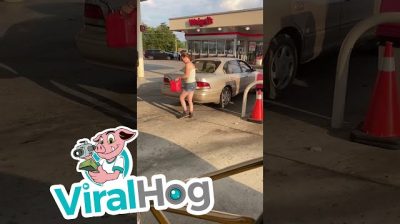 Em um campo, um homem fica nas mãos de um bezerro, Mas mamãe vaca imediatamente atacada.