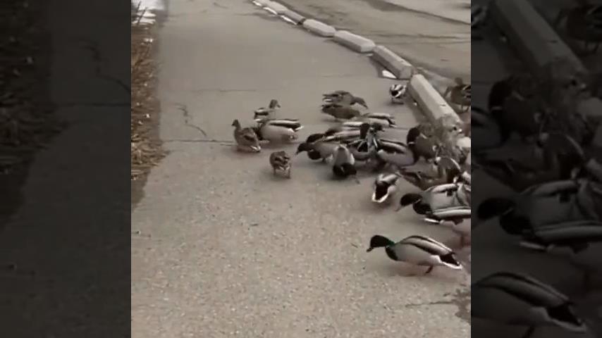 Um lince observa um bando de patos, escondido atrás de um arbusto. No momento certo, atacando.