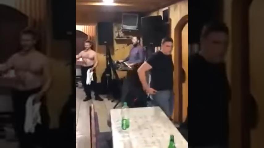 Durante uma despedida de solteiro na Sérvia, um vizinho entra no prédio para protestar contra música alta.