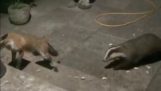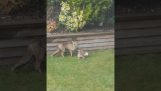 Filhotes de raposa, jogando com uma bola de tênis - Maio de 2015