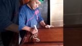 Para reduzir o tamanho dos cobertores para colocar no armário, uma mulher faz um truque inteligente com um aspirador de pó. Coloca os cobertores dentro de um saco grande, e com o aspirador suga o ar pelo saco. É assim que os cobertores são comprimidos, e não precisa mais de um grande espaço de armazenamento.