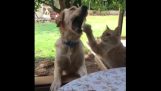 Ele deve ser uma boa pessoa quando um rebanho inteiro de cervos de cauda branca (Odocoileus virginianus) venha até ele e espere...