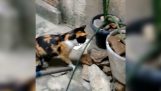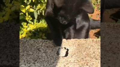 Uma mulher e seu filho no Brasil estavam na frente de seu apartamento, quando o garotinho que estava brincando com as chaves de casa, ele os jogou em um buraco no jardim. Em seguida, um simpático gato preto que pertence a um dos vizinhos, veio pedir ajuda.