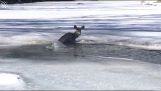 Jogar um pedaço de gelo em um lago congelado
