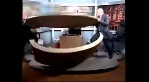 Convidado para televisionar discordam sobre o regime na Síria. Os espíritos são um dos dois quebra a tabela no estúdio. O seguinte é uma cena surreal.