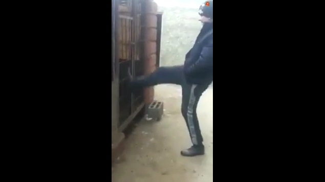 Um jovem no canil na Rússia, Ele achou que seria engraçado para alguns agriepsei cães klotswntas suas gaiolas. Finalmente consegui uma boa lição.
