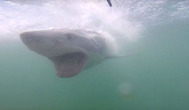 Em Gansbaai, África do Sul, mergulhadores assistir uma visão assustadora que você vai lembrar por muito tempo. A Gansbaai é a capital mundial dos tubarões. Mergulhadores e aventureiros de todo o mundo viajam para ver essas belas criaturas nas águas circundantes a ilha Dyer. Enquanto eles entram em uma gaiola, os turistas deixou espantado com o estouro de um ataque de tubarão branco. Felizmente, o tubarão não causa ferimentos, apenas uma experiência aterradora.