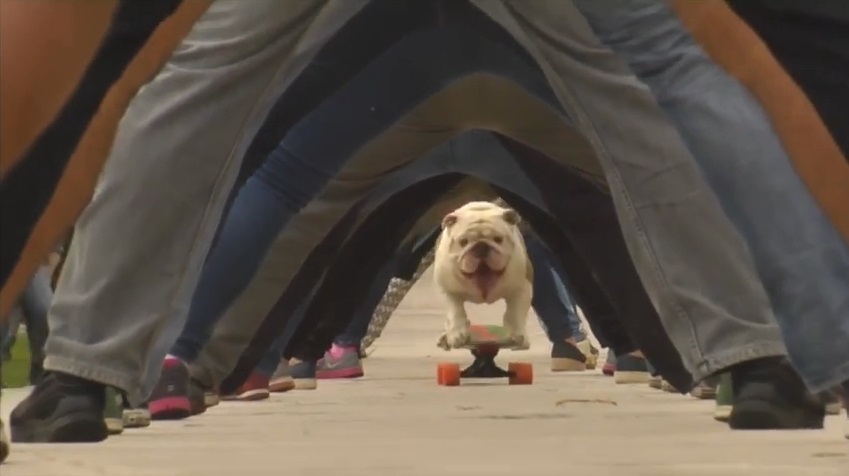 O Bulldog Otto fez um Guinness World Record com o passar do skate entre as pernas 30 pessoas. Navegação neste túnel humana não foi tarefa fácil, e exigem um controle preciso da prancha por Otto durante acrobática. Este cachorrinho aprendeu algumas técnicas impressionantes, e sabe como conseguir para um, mas também orientar um skate perfeitamente.