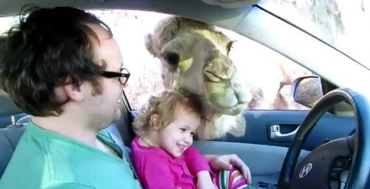 Esta família encontra um camelo impertinente em um zoológico de Drive-Thru