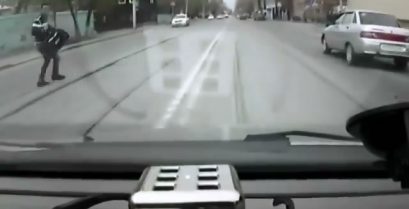 Movimento heróico por um guia na Rússia, que quando ele viu um ladrão que tentava fugir com bolsa de mulher, o perseguido e impedido.