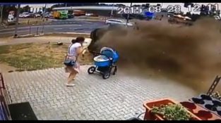 Em 28 de Agosto, 2015, em Wroclaw, Polônia, um motorista perde o controle do seu carro, que triste e passa em alta velocidade sobre uma calçada. A mãe atravessa esse tempo [...]