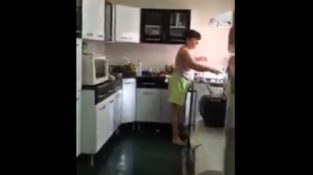 Um jovem no Brasil limpou seu quarto, e encontrei um boyboyzela que tinha comprado há vários anos para a Copa do mundo. Em seguida, fez uma surpresa para sua mãe.