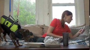 Um bassê rouba comida no estilo de Tom Cruise no filme 'Missões Perigosas'.