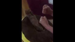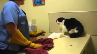 Um gato muito eyexapti perturba a clínica veterinária no momento da vacinação.