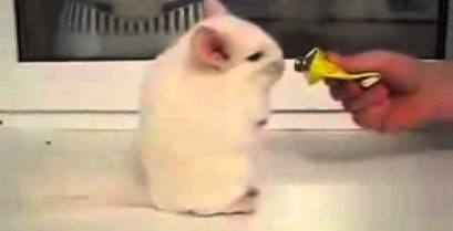A chinchila se encanta com o cheiro da cola e... começa a andar sobre duas pernas.