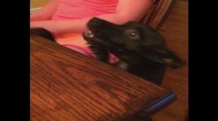 A reação muito engraçada de um cão, Quando ele vê uns biscoitos.