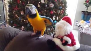 Papagaio está doente de Santa roubar o show com canções de Natal.