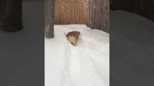 Este adorável corgi, maia, não deixe um pouco, ou mesmo uma grande quantidade de, neve mantê-la de explorar o quintal. Ela escava no pó caída fresca para arar um caminho através das maravilhas do inverno.