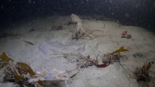 A cena ocorreu em 10 fevereiro de 2017 perto de Monterey, Califórnia. o fundo do mar, um mergulhador registra um polvo tentando pegar um caranguejo. Por muito tempo, polvo [...]