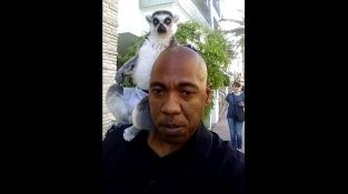 Um lêmure nos Estados Unidos Miami faz um salto espectacular de humano para humano. Ele também aprendeu a dizer 'Olá'.
