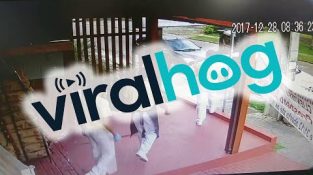 Um sai de casa e vai para seu carro, mas desliza maneira muito engraçada na estrada gelada.