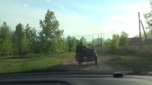 Apanha a moto triciclo perseguição na floresta (Rússia)