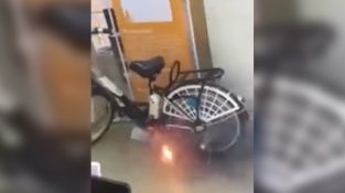 A bateria de uma bicicleta elétrica na China toma fogo e explode.