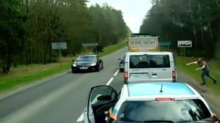 Um motorista de caminhão na Polônia intervém quando vê alguém joga lixo de uma janela do carro.