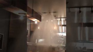 Saganaki desencadeando os sprinklers em Cava Mezze noite passada