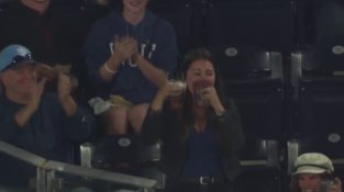 Durante um jogo de beisebol em San Diego Estados Unidos, a bola acaba no copo de cerveja que segurava uma mulher.