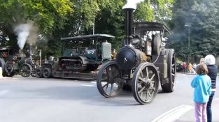 Um comboio de veículos do vapor 1ª Guerra Mundial