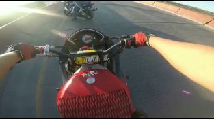 Um motociclista fazendo manobras perigosas colide com uma van para tentar ultrapassá-lo. O piloto vai ser pego pelo corpo do carro e será poupado do pior.