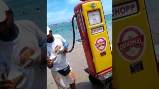Um vendedor ambulante de cerveja no Brasil, Serve o produto de utilizar bombas de novos.