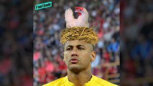 salto engraçada de um javali sobre uma parede.