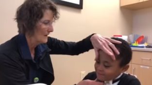 Um pequeno menino com paralisia das cordas vocais, Ele fala pela primeira vez graças a um ilektroarrynga.
